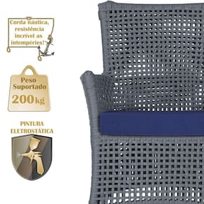 A corda nautica adiciona um toque de rusticidade moderna, enquanto o estofado impermeavel garante que sua Sofa esteja sempre impecavel, mesmo apos uma chuva inesperada ou um acidente com liquidos.