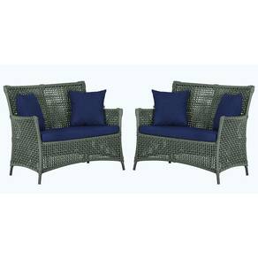 2 Sofás área Externa Igapó Alumínio Preta Corda Náutica E10 Verde