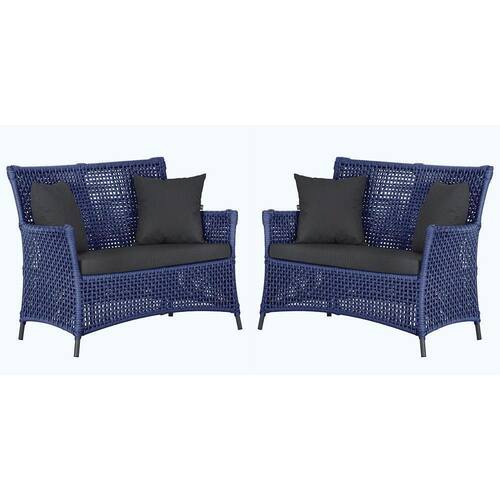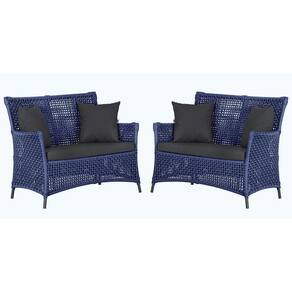 2 Sofás área Externa Igapó Alumínio Preta Corda Náutica E11 Azul - Preto