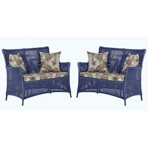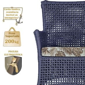 2 Sofás área Externa Igapó Alumínio Preta Corda Náutica E6 Azul - Preto