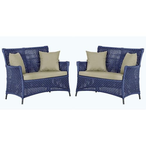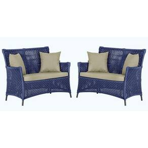 2 Sofás área Externa Igapó Alumínio Preta Corda Náutica E7 Azul