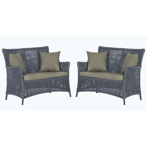 2 Sofás área Externa Igapó Alumínio Preta Corda Náutica E8 Prata - Preto