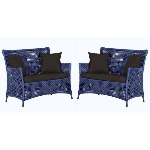 2 Sofás área Externa Igapó Alumínio Preta Corda Náutica E9 Azul