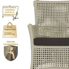 A corda nautica adiciona um toque de rusticidade moderna, enquanto o estofado impermeavel garante que sua Sofa esteja sempre impecavel, mesmo apos uma chuva inesperada ou um acidente com liquidos.
