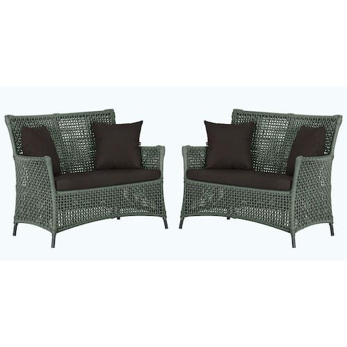 2 Sofás área Externa Igapó Alumínio Preta Corda Náutica E9 Verde