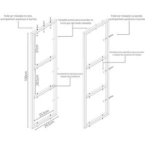 Conteúdo da Embalagem: 2 Arcos, 6 Parafusos de Fixação, 6 Buchas, 6 Tampões de Parafuso de Fixação, 12 parafusos para fixação da prateleira e 12 tampões para os furos excedentes.
