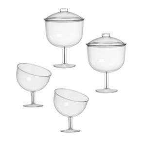 2 taças tropical 1,3 com tampa + 2 taças tropical peqDescrição:Produto indicado para quem não abre mão de praticidade para servir e limpar.Acrílico cristal é premium qualidade superior- produto de qualidade premium superior;- super resistente porque foi feito para durar;- muito mais fácil de limpar e super prático para servir;- acabamento de alto brilho com design moderno; - indispensável em casa, ideal para comércios, festas, eventos e buffets. muito utilizado por profissionais Sucesso comprovado, quem utiliza aprova e recomendaCuidados:Não colocar no freezer, não utilizá-lo no micro-ondas.Não suporta altas temperaturas como panelas etc...Características:Taça tropical acrílico com tampaAltura: 18cmAltura com tampa: 22cmBase: 7cmDiâmetro: 15,5cmDiâmetro boca: 15cmCapacidade:1,3litrosTaça tropical pequenaAltura: 15cmDiâmetro: 12cmDiâmetro base: 7cmCapacidade: 400mlConteúdo:- 2 x unidade de taça tropical com tampa - 2 x unidade de taça tropical pequenaCód: 3t00447Cod: 3t00450Sku:tb004921