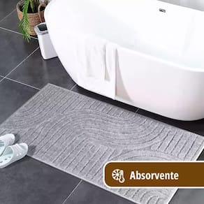 Vantagens - base antiderrapante; - soft: macio ao toque; - absorvente; - fibras resistentes; - não solta pelos; - antimofo; - alta durabilidade e com ótimo acabamento; - pesado, evita tropeços; - maior retenção da sujeira e umidade; - fácil de limpar; - combina com vários ambientes; - elegante e discreto