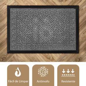 VANTAGENS- Superfície em alto relevo, retém a sujeira;- Fibras resistentes, não solta pelos;- Base emborrachada antiderrapante;- Evita tropeços, não levanta as pontas;- Material firme e pesado, não sai do lugar;- Antimofo, pode molhar;- Alta qualidade, acabamento Premium;- Para ambientes externos e internos;- Super fácil de limpar. CONTÉM: 2 unidade(s) COR: Cinza