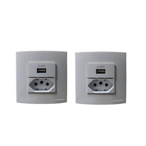 Tomada para embutir em madeira, MDF, MDP, Pedra, Marmore, Granito, Drywal ou derivados. Utilizada principalmente na marcenaria, ideais para peças planejadas como armários, cabeceiras, painéis, bancadas, balcões de cozinha, mesas para escritório, entre outras1 Saidas USB, Bivolt Automático, 5Vcc/Max. 1A1 Tomada 3 pinos 2p+t 20A ajuste automático para 10ACor: BrancaComposição: Materiais plásticos isolantes termoplásticos de engenharia e ligas metálicas condutorasComprimento: 80mm / Largura: 80mm / Altura 36mmDiâmetro de furanção: 70mm Marca: Não Informado