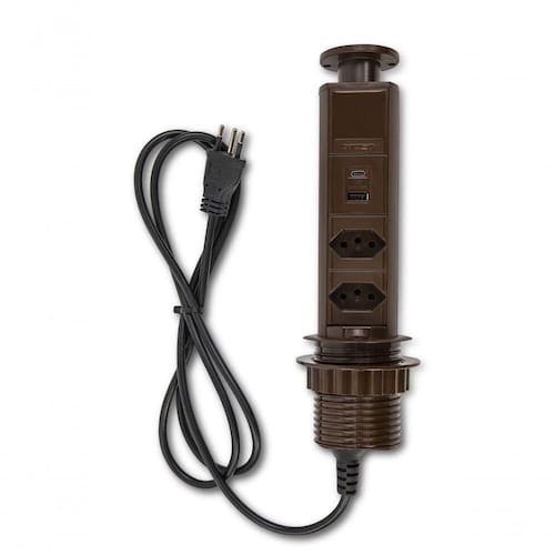 Este anuncio contempla 2 Torres de Tomada Retrátil Multiplug 2 Tomadas 20A + 2 USB Rápido na cor Marrom