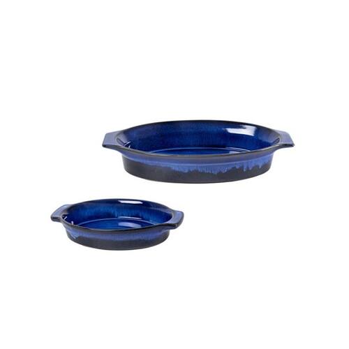 Cód.: UN0023 2 Travessas de Cerâmica Azul Material: Cerâmica Cor: Azul Dimensões: 40x23,5x7,5cm (CxLxP) 28,5x18x5cm (CxLxP)