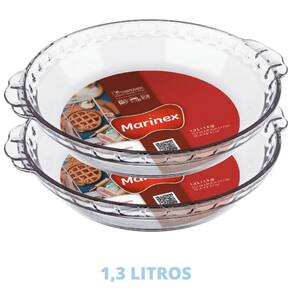 Itens inclusos: 2 Assadeiras de vidro Filetada 1,3Litros Marinex com as respectivas descrições acima.