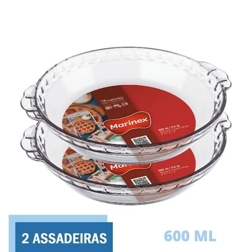Itens inclusos: 2 Assadeira de vidro Filetada 600ml Marinex com as respectivas descrições acima.