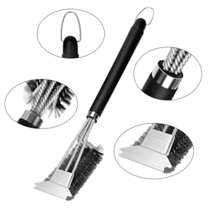 CARACTERÍSTICAS PRINCIPAIS:- Limpe completamente a sujeira na grelha sem grandes esforços.- Cabo longo e antiderrapante, garante limpeza precisa e eficaz.- Cabo longo mantêm a mão segura e distante do calor.- O raspador auxilia na higienização de áreas mais difíceis.- Material: Inox.- Tamanho: 45,8cm x 7,5cm.- Peso: 290g. TEMOS SEU PRODUTO EM ESTOQUE ENVIAMOS SEU PEDIDO EM ATÉ 1 DIA ÚTILAPÓS A CONFIRMAÇÃO DO PAGAMENTO.