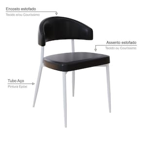 2 Unidades Cadeira Bless Fixa C/4 Pés 53 X 55 X 78cm Pés Brancos. Courino Preto Courino Preto