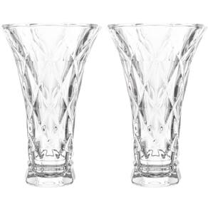 2 Vasos de Vidro Lyor Diamond Transparente 13x20cm Decorativo para Arranjo de Flores