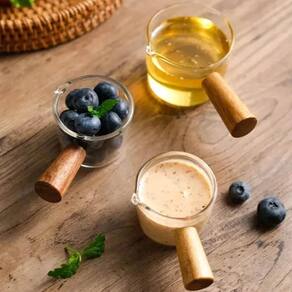 O kit de molheira de vidro com cabo de bambu é ideal para servir caldas, cremes, shoyu entre outros molhos durante as refeições. O cabo de bambu adiciona um toque de estilo natural e orgânico à molheira de vidro, combinando a elegância do vidro com a beleza e textura do bambu. Feita de vidro transparente permite que você veja o conteúdo do recipiente. Ideal para adicionar a mesa posta em uso doméstico ou em restaurantes, hotéis e bares. Cremeira de limpeza fácil e prática.