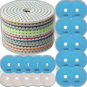 Transforme o acabamento das suas superfícies com o Kit Lixas Diamantada 4 Polegadas 100mm da KaQi Desenvolvido para oferecer o melhor polimento e acabamento, é perfeito para quem busca resultados profissionais, tanto em pedras como granitos, mármores, cerâmicas, quanto ardósia, calcário, dekton, quartzo, porcelanato, pedra projetada, concreto, nanoglass, super nano, vidro e muito mais. Seu lixamento pode ser a seco e a úmido, o que proporciona um processo mais rápido, sem gerar calor excessivo. Assim, é possível garantir um resultado sem manchas ou falhas, e ainda favorece um efeito brilho d'água incrível