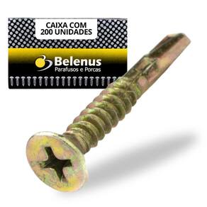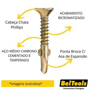 Parafuso Drywall Aço Médio Carbono Cementado e Temperado Bicromatizado Cabeça Chata Phillips Ponta Broca C/ Asa de Expansão, Rosca Din 7970 (Din en Iso 1478)