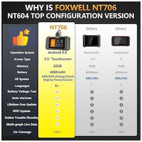 O Scanner FOXWELL NT706 é uma ferramenta de diagnóstico automotivo de alta qualidade, baseada em tablet, aprimorada a partir do modelo NT604 mais vendido. Principais melhorias incluem uma capa de borracha resistente a choques para uma aderência segura e durabilidade de longo prazo. Tela sensível ao toque altamente responsiva de 5.5 polegadas com uma interface intuitiva para operação suave. Sistema operacional Android 9.0, bateria de lítio de 4000mAh, proporcionando uma experiência de diagnóstico premium que supera o NT604. Reset de Luz de Aviso com Um Clique. Com luzes de aviso do motor, ABS, SRS, transmissão ou airbag? Este scanner obd2 diagnostica rapidamente os problemas, lê e limpa os códigos de erro com um clique após os reparos, sem mais suposições. Evite viagens caras ao mecânico. Diagnóstico DIY economize centenas em taxas de oficina. Auxílio na Inspeção Anual do Carro. Com 10 Funções OBD2, você pode saber rapidamente o status do seu carro com a verificação de prontidão IM com um clique. Usando a Pesquisa de Código de Problema (DTC Lookup), você pode pesquisar automaticamente os códigos de erro com apenas um clique, conhecendo o significado do código e eliminando a necessidade de procurar informações. Testando a voltagem da bateria, este leitor de códigos de carro pode informar sobre o estado de saúde do veículo. Se você deseja economizar dinheiro e tempo, apenas um NT706 é suficiente. Exibição de Dados Gráficos em 4 em 1. Essa ferramenta de verificação de motor permite personalizar 132 parâmetros de dados para construir gráficos de diagnóstico multidimensionais. Possui capturas de tela instantâneas, geração de relatórios em PDF com um toque, reprodução e gravação de dados em tempo real e revisão segura de dados históricos. Compartilhe relatórios gráficos via Bluetooth/email em segundos, tudo com simplicidade de um clique, sem sequências de botões complexas. Suporta 99% dos Modelos e Protocolos de Veículos. Essa ferramenta de diagnóstico automotivo funciona com 99% dos modelos de carros de 1996 até hoje, suportando 10.000 veículos para um verdadeiro diagnóstico universal. Cada verificação economiza centenas em taxas de oficina, e o relatório detalhado permite que os mecânicos pulem a etapa de diagnóstico e partam direto para os reparos. Compatibilidade pode variar dependendo do modelo e ano do veículo. Escolha de Presente Perfeita com Estojo Protetor Agradável. Este leitor de códigos para carros e caminhões é perfeito para presentear o Pai, Marido, Namorado, Irmão, ou qualquer pessoa nas funções de Técnico, Revendedor de Carros, Revendedor de Carros utilizados, Mecânico de Carros, Engenheiro Automotivo, Técnico de Diagnóstico, Mecânico Doméstico, Iniciante em DIY, ideal também para reparos de carros em casa. Notas Importantes: O NT706 NÃO suporta controles bidirecionais/testes ativos/programação de chaves. Aproveite as atualizações WiFi vitalícias e suporte técnico, incluindo ajuda remota. Estamos comprometidos em resolver seus problemas e crescer com você.