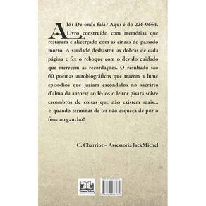 Olô? De onde fala? Aqui é do 226-0664. Livro construído com memórias que restaram e alicerçado com as cinzas do passado morto. A saudade desbastou as dobras de cada página e fez o reboque com o devido cuidado que merecem as recordações. O resultado são 60 poemas autobiográficos que trazem a lume episódios que jaziam escondidos no sacrário d’alma da autora; ao lê-los o leitor pisará sobre escombros de coisas que não existem mais... E quando terminar de ler não esqueça de pôr o fone no gancho!