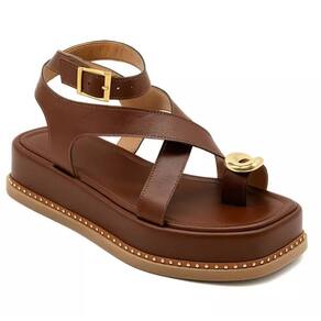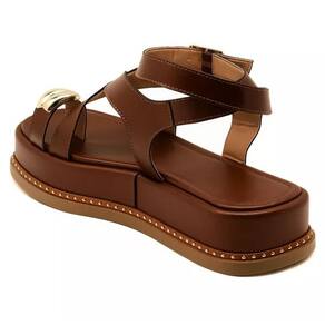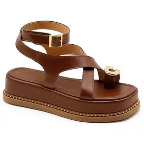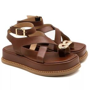 23403FP-Sandália Flatform Feminina Papete Tiras Fivela Napa - 34 - Marrom