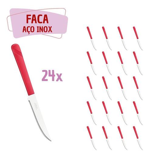 24 Facas Vermelho Aço Inox Plástico Luna Casa Almoço