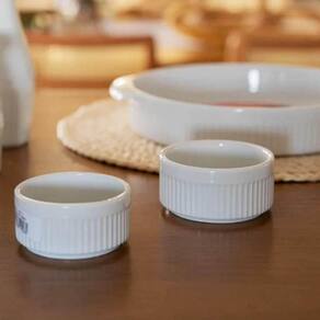 Garantia: 90 dias / Peso total: 4,992kg / Cor predominante: branco / Ref: 7798139684569; Dimensões de cada ramekin: 9cm (D) x 4,5cm (A); Capacidade de cada ramekin: 180ml; Material: porcelana; Conteúdo: 24 ramekins de porcelana 180ml.
