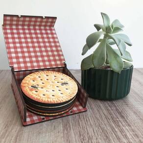 24 Porta Copos e Caixinha MDF Descansos Estampas Bolacha Maria para Lancherias Bares.