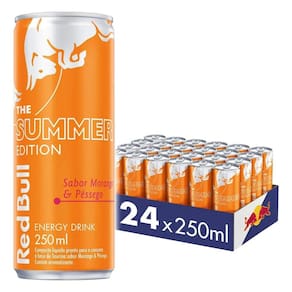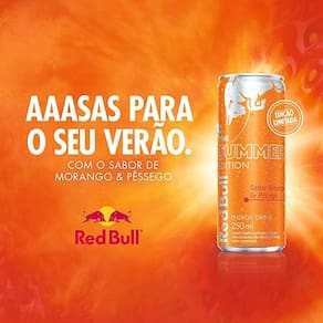 24x Energético RED BULL Morango e Pêssego 250ml A fórmula do Red Bull energy drink contém ingredientes da mais alta qualidade: cafeína, taurina, vitaminas do grupo b, açúcares, águaUma lata de 250 ml de Red Bull Energy Drink contém 80 mg de cafeína, aproximadamente a mesma quantidade de uma xícara de caféA quantidade de açúcar no Red Bull é equivalente a quantidade de açúcar de 100ml de suco de maça ou laranjaAs latas do Red Bull são feitas de alumínio 100% reciclável Ingredientes: A fórmula especial do Red Bull Energy Drink contém ingredientes da mais alta qualidade: Cafeína, Taurina, Vitaminas do grupo B, Açúcares, água. Não contém glúten