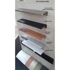 Puxador em alumínio para móveis vancouver / romadescrição técnica:- material: alumínio- modelo: vancouver / roma 8015- medidas disponiveis: 82mm furo a furo 64mm , 146mm furo a furo 128mm , 210mm furo a furo 192mm disponível em outros anuncios - espessura: 1,3mm- parafuso para instalação: 4,0 x 16mm não inclusos características: puxador ideal para qualquer tipo de móvel. Funciona em portas de bater ou de correr ou frentes de gavetas com limitide máximo de espessura em 18mm da porta/gaveta.Diferencial:puxador primeiramente é cortado depois tem suas pontas abauladas, escareado na parte traseira e posteriormente lixado, após todo esse processo recebe a anodização/pintura, por isso ele é 100% na cor, até mesmo as laterais. Opções: Cores disponíveis em outros anúncios: preto, anodizado cinza , inox escovado bronze claro , rose gold cobre , branco e dourado Medidas disponiveis em outros anuncios : 82mm furo a furo 64mm , 146mm furo a furo 128mm , 210mm furo a furo 192mm Marca: Não Informado