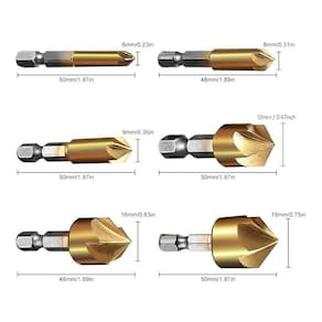26 Passo circular Countersink Drill Bits Wood Punch Especificação: 7PCS WOODWORKING DRILL SET Tamanho: 3mm (Diâmetro) x 60mm (L), 4mm (Diâmetro) x 75mm (L), 5mm (Diâmetro) x 85mm (L), 6mm (Dia) x 93mm (L), 7mm (Dia) x 10mm (L), 8mm (Dia) x 11mm (L), 10mm (Dia) x 12mm (L) 6-Piece Countersink BIT Forma: 5-Flauta Borda: 90 graus Countersink Bits Comprimento: 48mm Material: 4241 Tamanho do aço de alta velocidade: 6mm (1/4"), 8mm (5/16"), 9mm (3/8), 12mm (1/2), 16mm (5/8) e 19mm (3/4). 8PCS WOOD PLUG CUTTING TOOL BITS Tamanho: 5/8 (15.8mm Wood Plug), 1/2 (12.7mm Wood Plug), 3/8 (9.5mm Wood Plug mm), 1/4 (6.3mm wood dowel) mm) Shank: Round Shank Shank Diâmetro: 9.3mm. Material: Aço Carbono 45# HIGH SPEED STEEL STEP DRILL SET 3PCS: Material: Titânio Banhado Aço de Alta Velocidade Tamanho: 4-32mm (4mm, 6mm, 8mm, 10mm, 12mm, 14mm, 16mm, 18mm, 20mm, 22mm, 24mm, 26mm, 28mm, 30mm, 32mm) 4-20mm (4mm, 6mm, 8mm, 10mm, 12mm, 14mm, 16mm, 18mm, 20mm) 4-12mm (4mm, 6mm, 8mm, 10mm, 12mm) Especificação: 7PCS WOODWORKING BITS SET Tamanho: 3mm (diâmetro) x 60mm (L), 4mm (diâmetro) x 75mm (L), 5mm (diâmetro) x 85mm (L), 6mm (diâmetro) x 93mm (L), 7mm (diâmetro) x 10mm (L), 8mm (diâmetro) x 11mm (L), 10mm (diâmetro) x 12mm (L) 6 peças contradissor BIT Forma: 5-Flauta Borda: 90 graus Countersink Bits Comprimento: 48mm Material: Aço de alta qualidade 4241 velocidade Tamanho: 6mm (1/4"), 8mm (5/16"), 9mm (3/8"), 12mm (1/2"), 16mm (5/8") e 19mm (3/4") .8PCS WOODEN SOCKET CUTTING TOOL BITS Tamanho: 5/8 (15.8mm Wood Plug), 1/2 (12.7mm Wood Plug mm), 3/8 (9.5mm wooden dowel), 1/4 (6.3mm wooden dowel) mm)Haste: pernil redondoDiâmetro da haste: 9.3mmMaterial: aço carbono 45# 3PCS HIGH SPEED STEEL STEP BIT SET:Material: Aço de alta velocidade chapeado de titânioTamanho: 4-32mm (4mm, 6mm, 8mm, 10mm, 12mm, 14mm, 16mm, 18mm, 20mm, 22mm, 24mm, 26mm, 28mm, 30mm, 32mm) 4-20mm (4mm, 6mm, 8mm, 10mm, 12mm, 14mm, 16mm, 18mm, 20mm) 4-12mm (4mm, 6mm, 8mm, 10mm, 12mm)