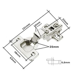 2pçs Dobradiças Caneco Pressão Curva 35mm 105º Calço Armário Resistente Aço Cromado Para Porta de Móveis.