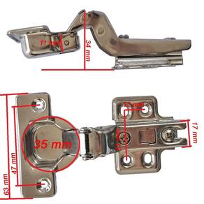 Dobradiça caneco 35mm em aço inox para portas de armário. Quantidade: Kit com 2 dobradiças caneco 35mm 8 parafusos Dobradiça inox super curva kit c/2 Esta dobradiça caneco de 35mm, fabricada em aço inox de alta qualidade, é a escolha ideal para quem busca durabilidade e resistência à corrosão. Perfeita para portas de armários de cozinha, banheiro ou qualquer outro móvel, proporciona um fechamento seguro. Com design discreto, oferece ajuste preciso, garantindo a funcionalidade e a estética dos seus móveis. Instalação fácil e compatível com uma ampla variedade de materiais, esta dobradiça é a solução definitiva para quem deseja unir praticidade e estilo. São indicadas para móveis com portas sobrepostas que necessitam de um fechamento total, isto é, móveis simples de duas portas ou módulos de roupeiros modulados. Além disso, as dobradiças super curva possuem uma limitação de abertura, ou seja, elas não abrem ângulos maiores que 90º Dobradiça em aço inox 201 calço fixo curvo com parafusos Benefícios: As dobradiças possuem design funcional permite o fechamento suave e silencioso das portas. São ideais para uso em móveis, proporcionando maior durabilidade às portas. Aplicações: Indicado para uso em móveis, para instalação de portas em armários, gabinetes, estantes e etc. Capacidade: A dobradiça é ideal para portas de 16 a 24mm; com duas dobradiças, suporta 25 kg. Características: Indicado para uso em móveis, para instalação de portas em armários, gabinetes, estantes e etc. Material: aço inox 201 com parafusos Medidas 111 x 62mm Caneco: diâmetro 35mm, profundidade 11,5mm. Entre furos 48mm Ângulo de abertura 90º Calço fixo duplo 4 furos . Entre furos 33mm do vendedor: 3 meses do vendedor: 90 dias