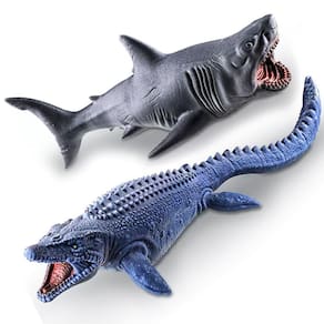 2un Brinquedos Tubarão e Mosassauro Realista Vinil 26cm 30cm