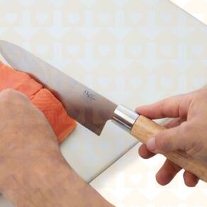 Além de sua eficácia na cozinha, essa faca é prática, resistente e fácil de limpar, tornando-a adequada para uso tanto profissional quanto doméstico. Recomenda-se lavá-la imediatamente após o uso, utilizando água morna e a parte amarela da esponja para garantir sua durabilidade. No entanto, é importante manuseá-la com cuidado devido à sua natureza cortante, mantendo-a fora do alcance das crianças.