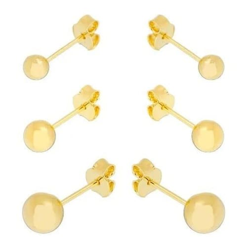 2X Brincos De Bolinhas Trio Ouro 18K Antialérgico