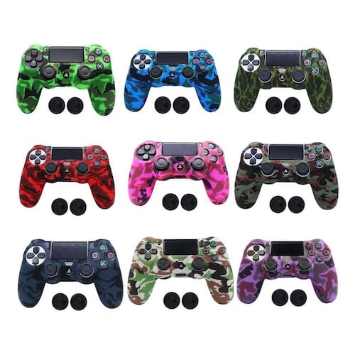 2X Capa Protetora Skin Para Controle Ps4 Camuflada + Par Gri