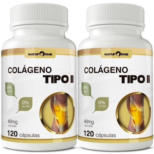 Colágeno Tipo II 40mg 120cps Natuforme Ingredientes: Colágeno Tipo 2 não desnaturado e excipiente amido de milho. Cápsula: gelatina e água deionizada. Não contém glúten Sugestão de uso: Ingerir 2 cápsulas ao dia. Conservação do Produto: Manter a embalagem bem fechada e armazenar em local fresco, seco (15 a 25) e ao abrigo de luz. Produto lacrado para sua proteção, Não utilizar em caso de violação. Manter fora do alcance de crianças.
