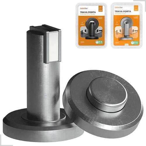 2X Fixador Trava Porta Magnético Dual Piso Ou Parede Rodapé