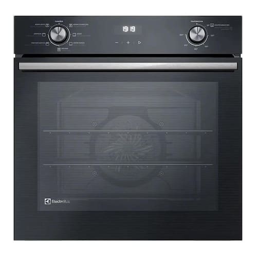 Forno de embutir elétrico com capacidade de 80L, função autolimpante, timer sonoro com desligamento e grill elétrico.Timer