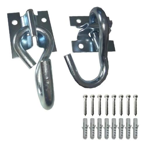 2X Gancho De Rede Reforçado Zincado 3/8 Com Parafuso E Bucha