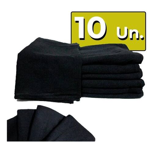 2X Kit 10 Pano De Prato Liso Preto Flanelado C/Bainha Atacad