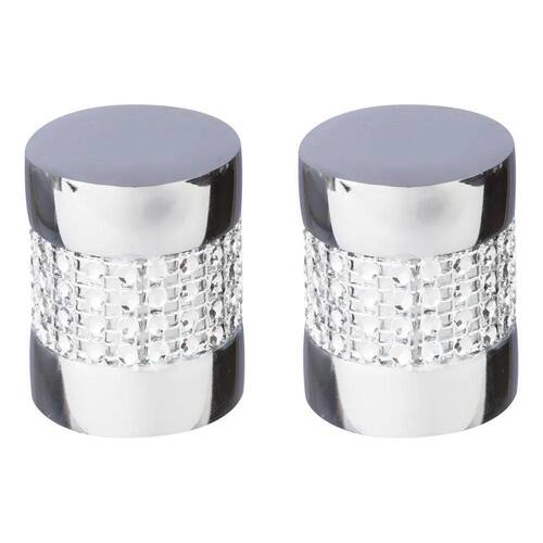 2X Kit Ponteira Para Varão Cortina 28Mm Strass Alumínio Par