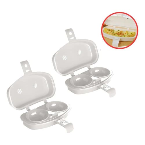 Omeleteira dupla para micro-ondas, permite o preparo de até 2 omeletes simultaneamente. Ideal para um café da manhã rápido e prático.Base antiderrapante