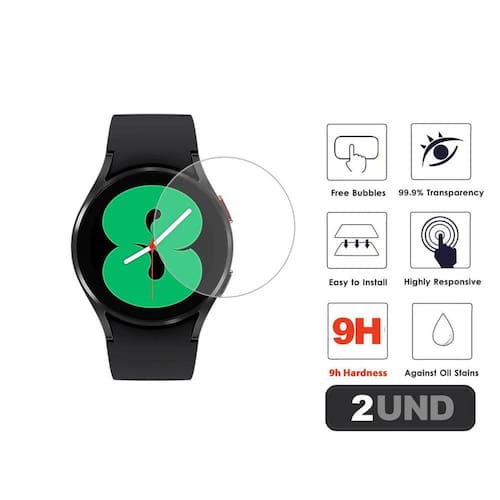 2x películas para galaxy watch 4 40mm em vidro temperado Atenção: a película serve apenas no galaxy watch 4 40mm, não tente comprar para outro modelo sem antes perguntar a compatibilidade. Características Feita em vidro temperado, nossa película possui apenas 0.3 mm de espessura, garantido total transparência e alta resistência, capaz de suportar até mesmo objetos afiados como lâminas e chaves. Ela possui adesivo à base de silicone, cujo instalação é bem simplificado, bastando alinhar a película com a tela. No entanto, antes de aplicar a película é necessário limpar a tela do seu relógio utilizando o kit de limpeza que enviamos junto com a peça. Uma vez que a película seja trincada, as partículas que são formadas não são afiadas e não se desprendem da camada adesiva de silicone, o que a torna bastante segura. Conteúdo da embalagem 2x películas para galaxy watch4 40mm em vidro temperado2x kits de flanelas para limpeza da tela Informações importantes 1 - os itens e/ou acessórios deste anúncio não possuem relação com a marca do fabricante do relógio ou smartwatch.2 - as imagens do anúncio são ilustrativas, ou seja, pode ocorrer leve variação entre o que é visualizado aqui e o produto físico.