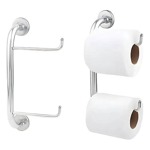 2X Porta Papel Higiênico Duplo Papeleira Dupla Fixação Metal