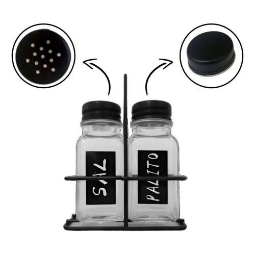 2X Porta Sal Saleiro E Porta Palito Paliteiro Vidro Metal E