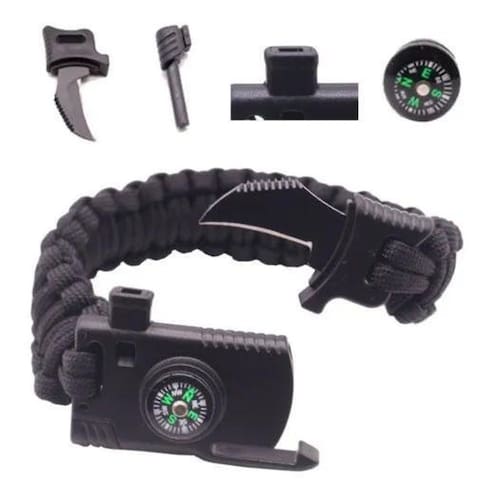 2X Pulseira Paracord Sobrevivência Militar Pederneira Bussol